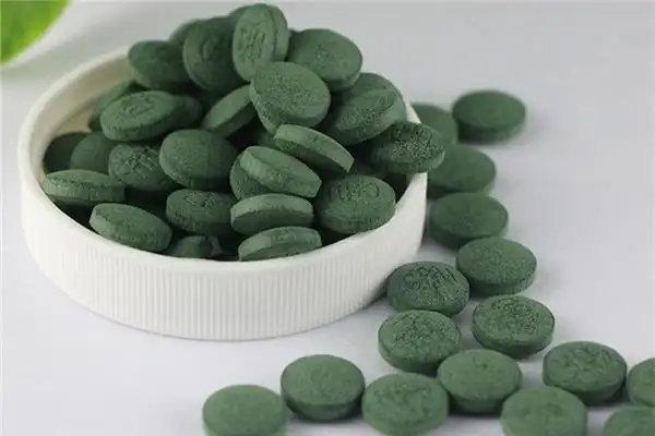 Spirulina powder. Excipients may include sodium carboxymethyl starch, sucrose, povidone K30, silicon dioxide, sodium bicarbonate, fumaric acid, magnesium stearate, etc.